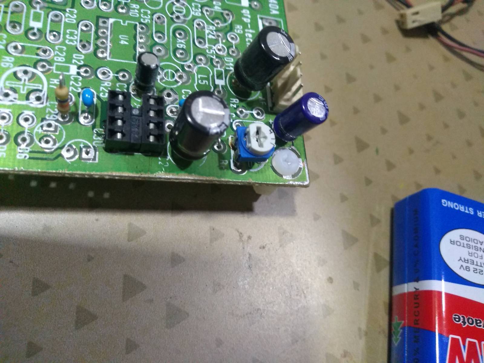 - R8: Circuit says 500 ohms trimmer. I had a 470 bourns one, so I used it.
